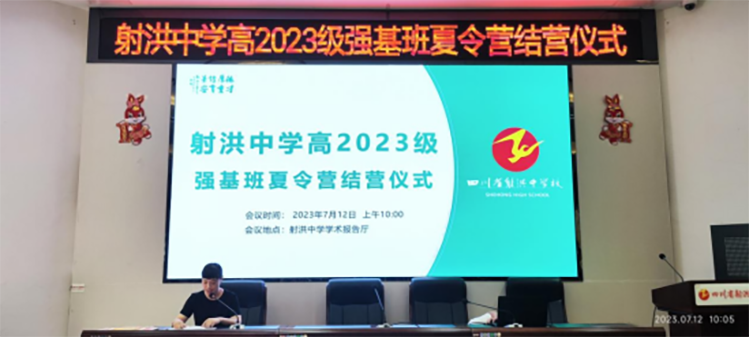7月12日上午,射洪中学高2023级强基班夏令营闭营仪式在学术报告厅隆重举行。学校党委书记王永刚,党委副书记、校长文清泉,党委副书记王小涛,教科室主任赵志茂,高2023级年级主任郭海兵等领导出席会议。年级管理部陈贵兵、吕贵等老师与高2023级强基班全体学生参加仪式,仪式由教科室副主任杨红主持。