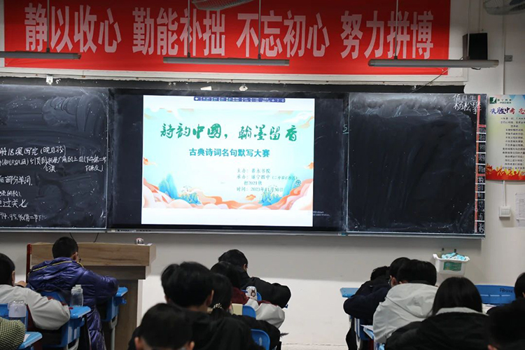 寒冬渐近,微雨朦胧。2023年11月30日下午,遂宁四中(二中滨江校区)若水书院组织初三年级开展了“诗韵中国,翰墨留香”古典诗词名句默写大赛,此次比赛契合初三年级备战中考的具体复习情况,让初三学子在默写大赛中不仅能巩固初中所学古诗词,更能在翰墨留香间感受传统诗词的魅力!