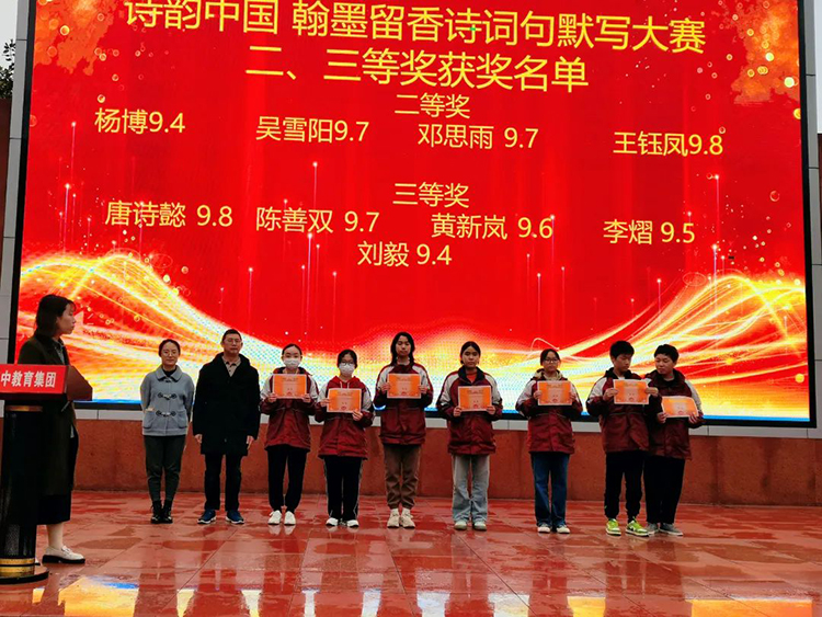 比赛过后,若水书院组织初三语文教师进行评阅。经过老师们公平公正地批阅和审定之后,共19人喜创佳绩,学校对表现优秀的学生进行了表扬,并颁发了奖状和相应的奖品,鼓励全体学生再接再厉,勇往直前!