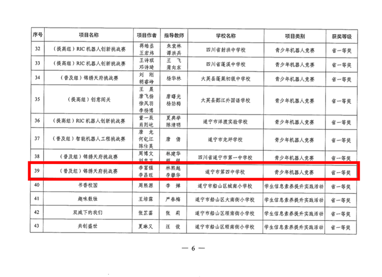 热烈祝贺遂宁四中学生在第六届遂宁市青少年科技创新成果市长奖评选活动中喜获佳绩!