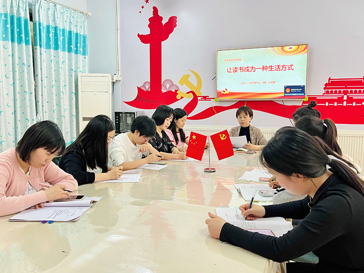 党支部书记杜君碧同志强调,“最是书香能致远,腹有诗书气自华,读书是党员教师最好的修行”,让喜爱阅读的种子在每个人心中落地生根,在阅读中汲取思想养分,坚定文化自信,把党的创新理论内化为政治认同、思想认同、情感认同,学榜样、做表率、争先锋,做以人民为中心的实干担当者和坚定践行者,共同书写天幼高质量发展新答卷。