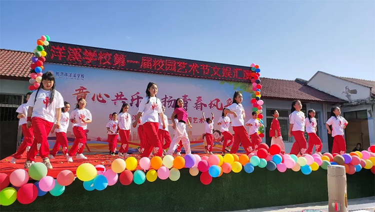 洋溪学校:举行首届校园艺术节4月30日,洋溪学校举行“童心共乐 扬青春风采”校园艺术节,精彩绝伦的舞蹈,悦耳动听的歌声,激情澎湃的朗诵,绚丽多彩的绘画,将师生们的多才多艺展现得淋漓尽致。