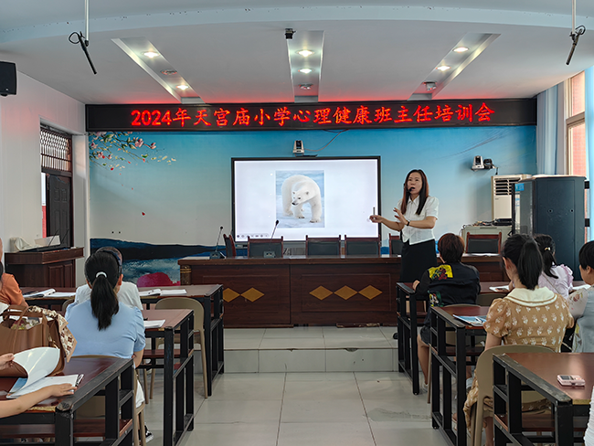 “教育是一棵树摇动另一棵树,一朵云推动另一朵云,一个灵魂唤醒另一个灵魂”。只有教师拥有健康阳光的心理,才能更好地帮助学生健康成长。为了帮助班主任们释放压力、舒缓身心,提高班主任老师对心理健康的重视和认知度,营造融洽温馨、积极进取的工作环境,近日,天宫庙小学特邀高级危机干预师、国家二级咨询师、遂宁市心理教育协会副会长,遂宁市专家库成员曾赵容老师为全校班主任开展了以“玩转压力,阳光心态”为主题的班主任心理健康培训活动。