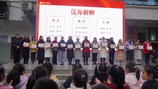 典礼的高潮部分,副校长蒋琴宣读了上一学期优秀教师、优秀班级以及优秀学生的表彰决定,并为他们颁发了荣誉证书和奖品。这一表彰不仅是对获奖师生过去努力的肯定,更是对全校师生的鼓舞与鞭策,激励着大家在新学期里再创佳绩。