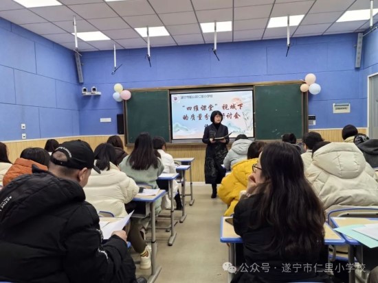 胡婷主任以精准的数据分析为开篇,她细致入微地剖析了上学期期末学业水平检测的各项数据,找出了差距与不足,并为我们设定了明确的目标。她强调,要紧密结合学生的学习状态,灵活调整教学策略,狠抓课堂教学实效,将 “四维课堂” 的理念真正落到实处。