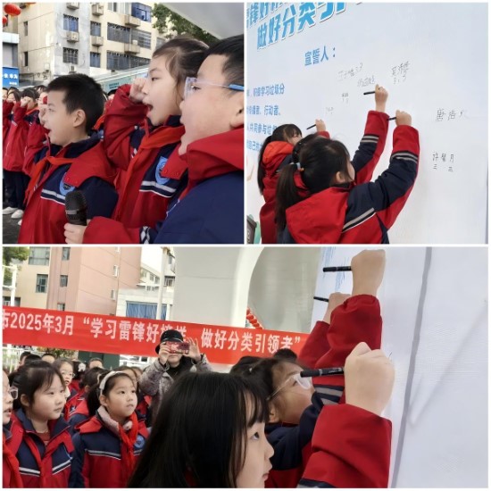 宣讲结束后,全体队员进行了庄严的宣誓:“我将以雷锋为榜样,积极学习分类知识,争做垃圾分类传播者、行动者、推动者,小手拉大手带动身边的人共同参与垃圾分类,为建设美丽家园贡献自己的力量。”铿锵有力的誓言表达了队员们践行雷锋精神和推广垃圾分类的决心。
