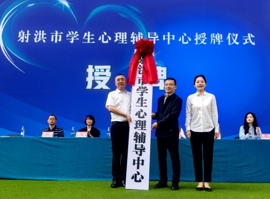 ▶4月30日,射洪市学生心理辅导中心授牌仪式暨2025年教职工心理知识巡讲启动仪式在射洪一小举行。