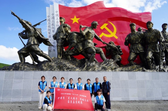 实践团沿着红军长征在若尔盖的路线,学习红军长征的历程和事迹。用脚步丈量红色热土,足迹遍布红色草地第一村-班佑村、阿俄垭口战斗遗址、包座战役牙弄路口战斗遗址、巴西会议遗址、包座战役求吉寺战斗遗址、三军同道北上纪念碑、求吉甲基毛泽东居所与求吉寺中共西北局会议遗址等。通过重走长征路,重温革命事迹、感悟榜样精神、传承红色基因,增强实践团成员民族凝聚感和自豪感,培养爱国情感和担当。