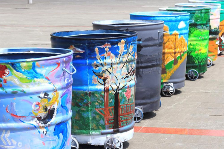 随着垃圾分类在全国深入开展,学校实行生活垃圾分类定点投放,使用了标准化四色垃圾桶,倡导更加健康环保的生活方式,让校园更加清洁美丽。一批原本在校园普遍使用大铁皮垃圾桶将成为过去式,直径约80厘米,足有1米多高的大铁皮桶在空下来的时候显得十分笨重。那么淘汰下来的垃圾桶将去往何处?作为废品处理实属可惜。经过广泛征求意见,学校决定变废为宝,给垃圾桶来一次“神秘”改造。由后勤基建处联合校团委、公寓团总支,以改造垃圾桶、变废为宝为目标开展了第四届“爱我校园”彩绘大赛。