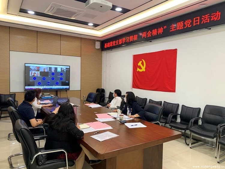 首先,花吐古拉镇镇长武德乐夫和基础课教研室党支部书记周宏岩分别介绍双方党支部的基本情况,并就“党建+扶贫”党支部共建工作进行研讨。随后,基础课教研室党支部于文博、司明宇、彭拴莲等党员,聚焦“绿色发展”“脱贫攻坚”“六保六稳”“人民至上”“民法典”等“两会热词”,分享学习心得,探讨将“两会精神”融入思政课教学的具体路径,并与柏林艾勒党支部党员交流了学习体会。