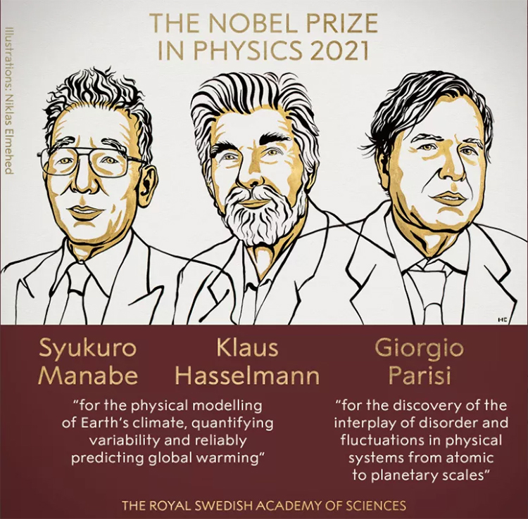 北京时间10月5日,2021年诺贝尔物理学奖揭晓获奖名单,Syukuro Manabe、Klaus Hasselmann和Giorgio Parisi共同获奖。获奖理由是“对我们理解复杂物理系统的开创性贡献”。