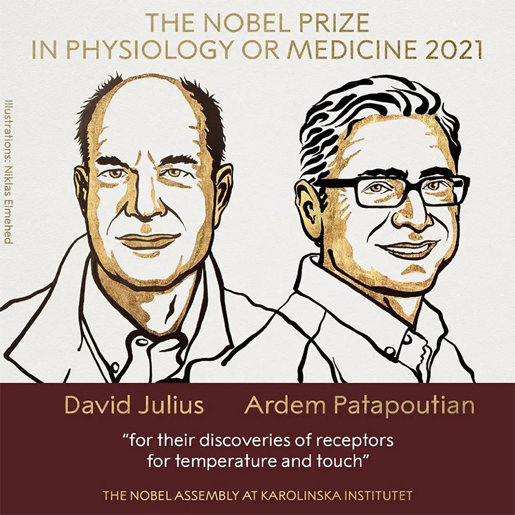 北京时间10月4日,2021年诺贝尔生理学或医学奖揭晓获奖名单,David Julius和 Ardem Patapoutian共同获奖。获奖理由是发现了温度和触觉感受器。