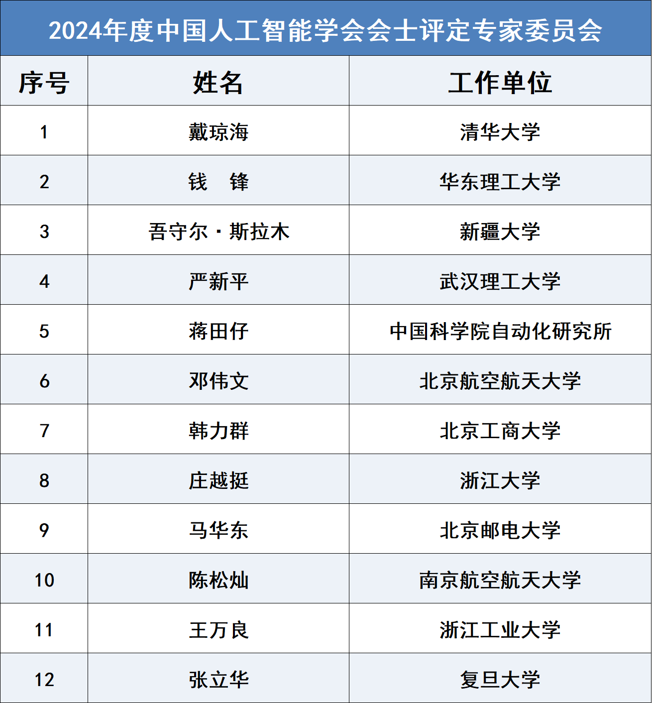 20位专家入选!2024年度中国人工智能学会会士增选名单公示