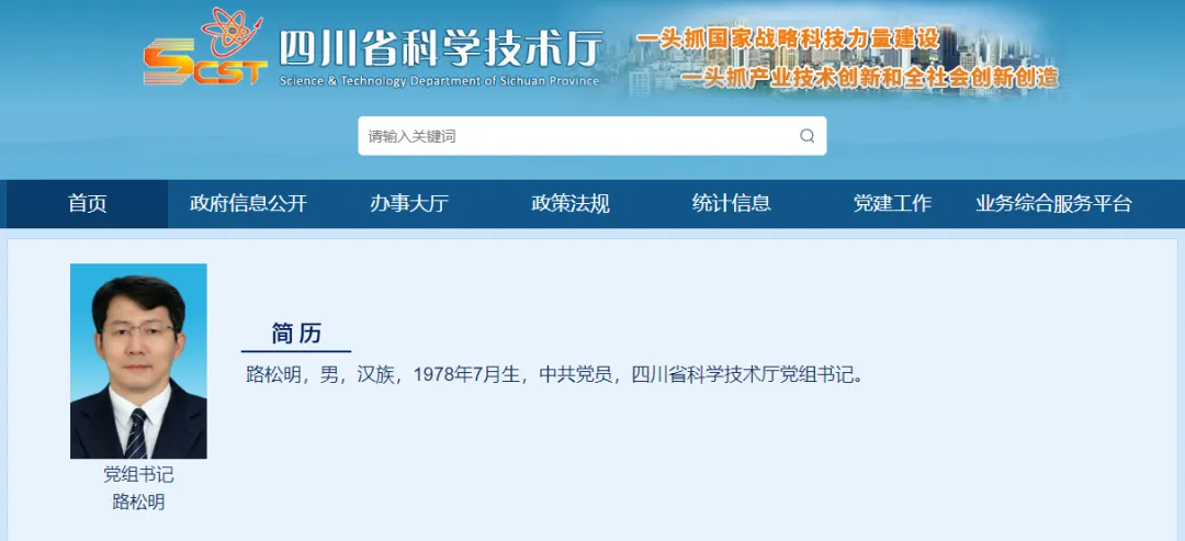 12月17日,据四川省科学技术厅官网消息,路松明任四川省科学技术厅党组书记。