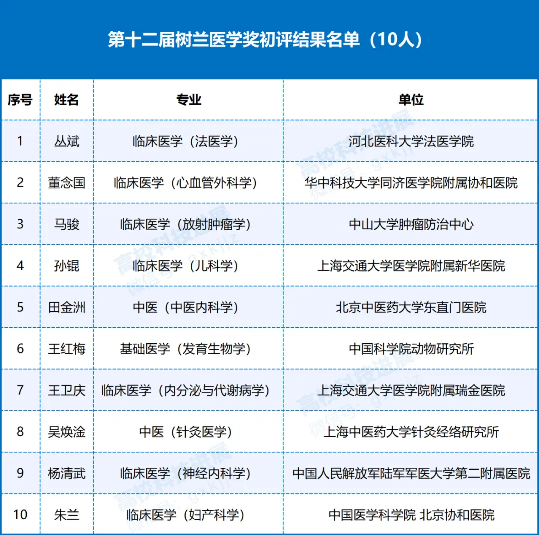 9月19日,第十二届树兰医学奖初评结果名单公示,初评委员会经过材料审阅、专业组评审、投票等程序,从180位被提名人中产生43位有效候选人进入终评会议。