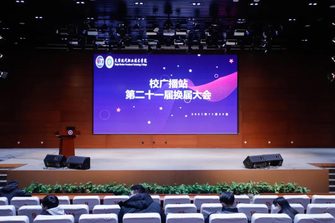 天津现代职业技术学院广播站作为天津现代职业技术学院重要的传播窗口和教育宣传阵地,在学院学生处指导下,不断推动学院语言文字工作开展,“现代之声”陪伴全校师生已经走过二十个春秋。2021年11月23日16:30广播站第二十一届换届大会在报告厅举行,学生处教师刘杨、各学生组织负责人及广播站全体站员出席大会并担任评委,全院100余人到场观看本次大会。