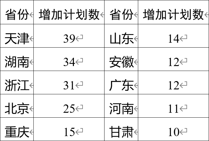 2023年,中国民航大学本科整体招生计划有所增长,特别是普通本科(不含飞行和艺术类)专业。增长前十名的省份为: