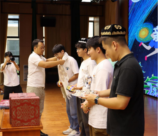 风采展示结束后,由教师李超为在场师生讲解“来自新疆的礼物”,并由校团委教师刘枝财向江西理工大学师生赠送纪念品。