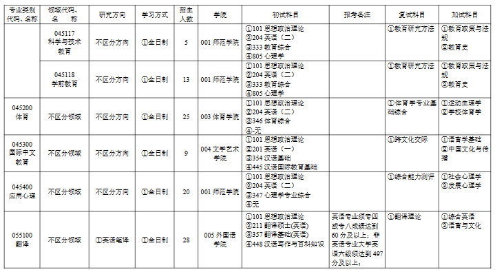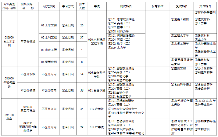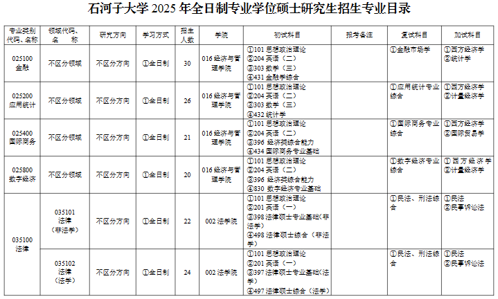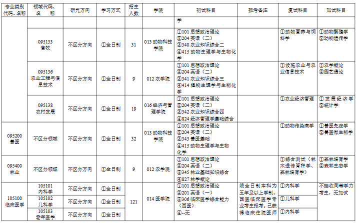 石河子大学2025年全日制专业学位硕士研究生招生专业目录