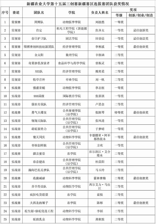 近年来,新疆农业大学深入推进创新创业教育改革,成果显著,形成多点突破、纵深发展的良好态势。此次在“三创赛”中的优异表现,是新疆农业大学创新创业教育成效的集中体现,更为推进188金宝搏beat官网登录 综合改革、促进高校毕业生高质量创业就业注入了强劲动力。未来,学校将继续深化创新创业教育,培育更多优秀项目与创新人才,向着更高目标奋勇前行!