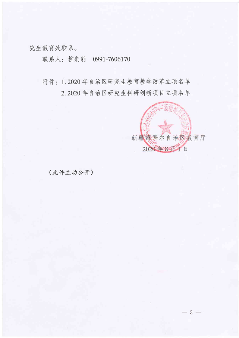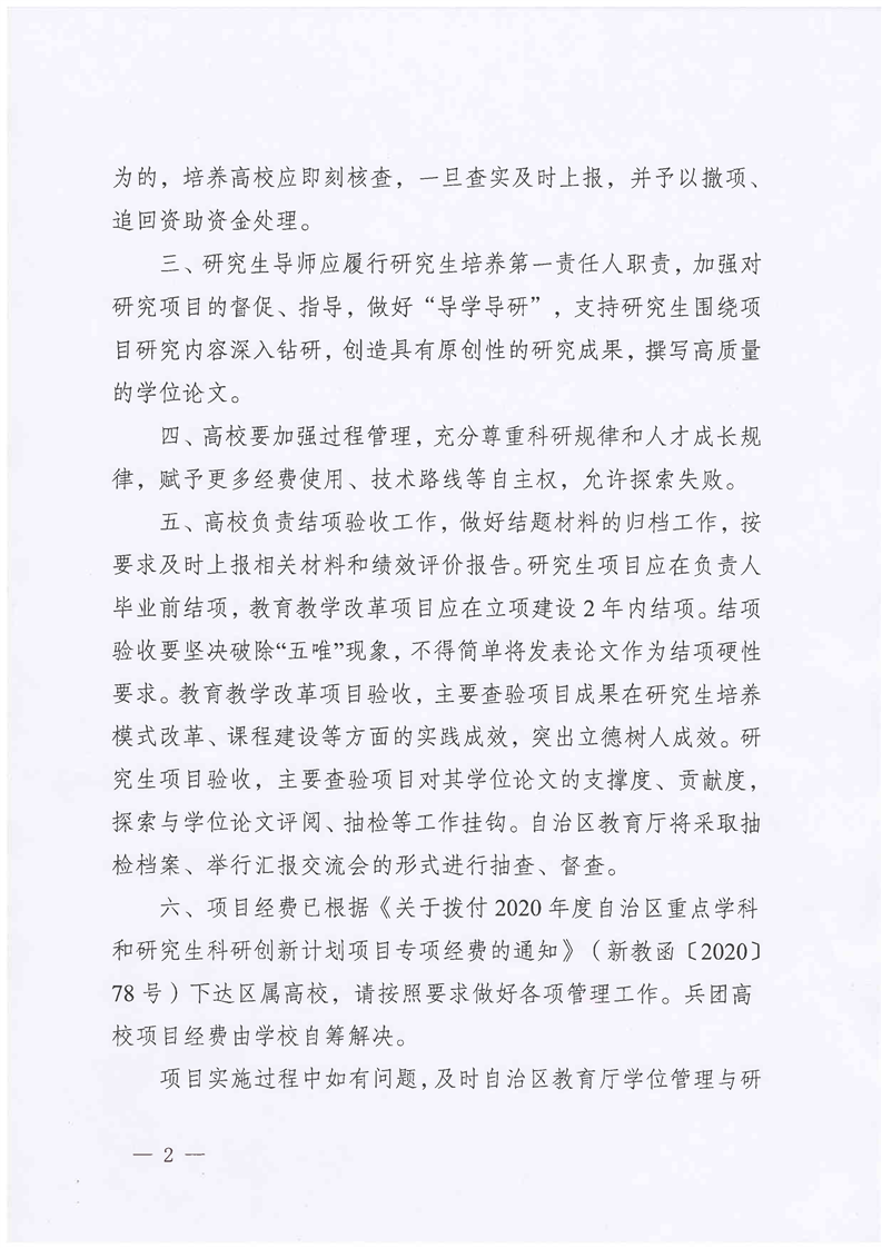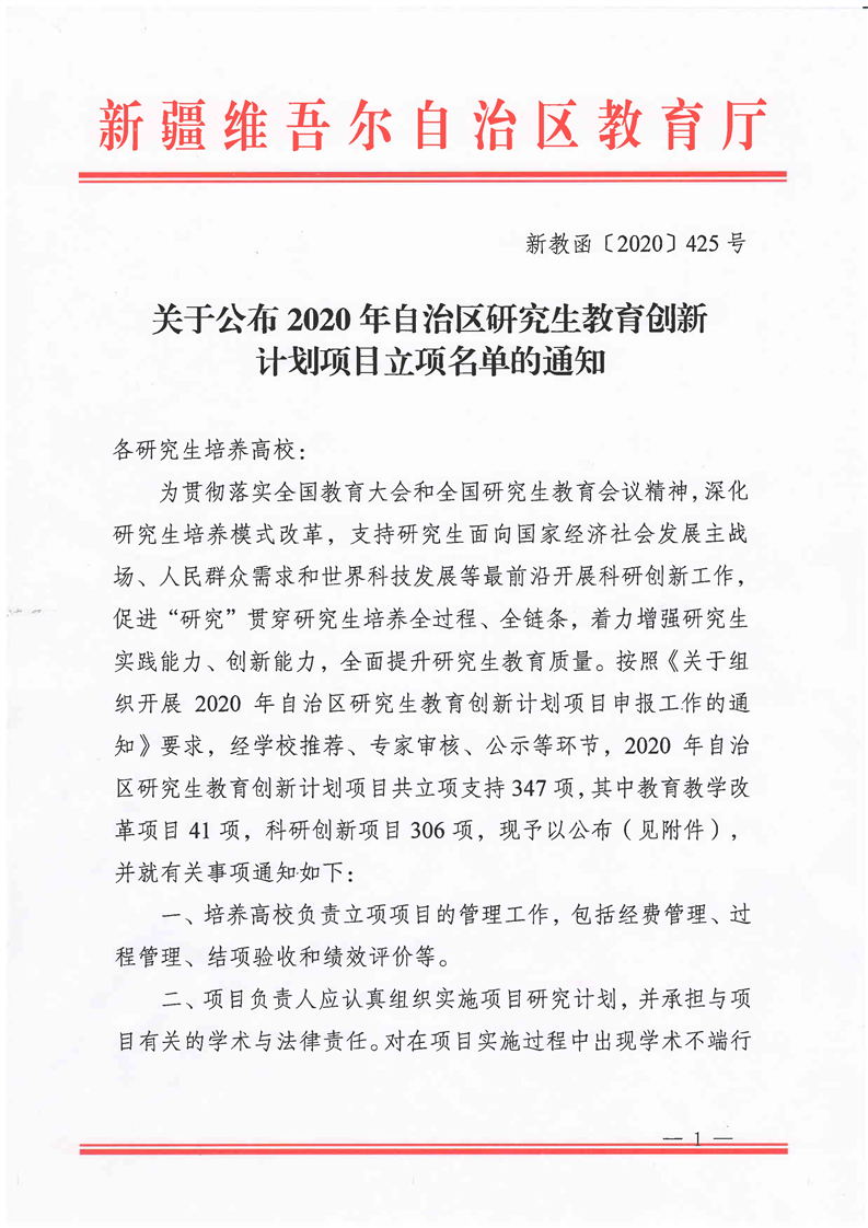 关于公布2020年自治区研究生教育创新计划项目立项名单的通知