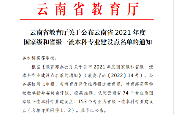 办公厅关于公布2021年度国家级和省级一流本科专业建设点名单的通知》文件精神,经金博宝最新官方网站查询网址