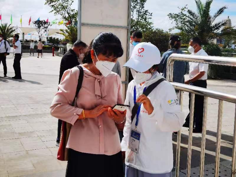 来到相应岗位,防疫组的志愿者负责在各个入口查看入场人员的健康码、行程卡、核酸检测报告;巡逻组的负责在展馆内进行巡视,维护好展馆内的秩序;展览组的负责在各个展区发放宣传手册、讲解站台内容等;接待组的负责到火车站、机场等地接送参会人员……在展区内的每一个角落,都能看到他们的身影。