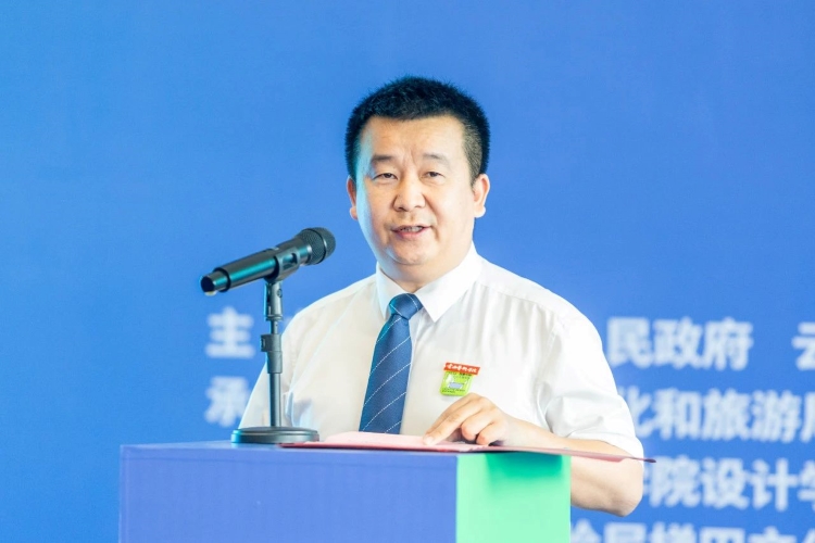 云南艺术学院设计学院院长万凡教授致辞,他表示今年是设计学院建院40周年和“创意系列”活动持续开展的20年,此次“创意元阳”是学院开展校地校企合作的延续和升华,是学院服务区域经济社会发展的一大重要举措,更是学院深入学习贯彻党的二十大精神,深入推进实施科教兴国战略的一次生动体现。通过深入挖掘元阳地区特有区域文化内容进行创新设计打造,践行了学院从教学到创作、从创作到实践,从实践到市场,从市场到服务社会的“政产学研用”一体化人才培养模式,推动了活动设计成果的研发、宣传、展示、推介、运用和转化落地,是学院在服务地方社会发展和促进地方文化传承创新等方面的生动实践。