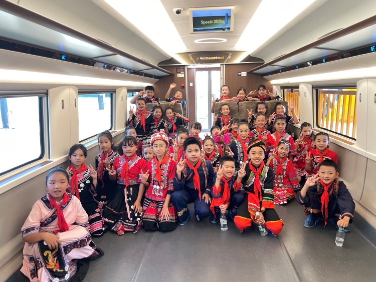 昆明铁道职业技术学院学生走进宁洱民族团结实验小学,为宁洱民族团结实验小学师生代表讲述了从滇越铁路到中老铁路的云南铁路发展史,以及铁路沿线各民族在交往交流交融中和谐共生、精诚团结、人心归聚、精神相依的历史故事。大学生牵手小学生,在一张张白纸上,大家用画笔画出了自己心目中的高铁模样。