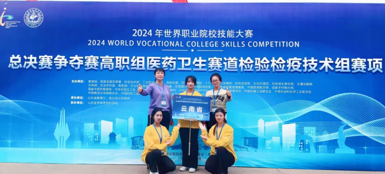 10月27日,2024年世界职业院校技能大赛总决赛争夺赛高职组医药卫生赛道检验检疫技术赛项在山东医学高等专科学校正式开赛。来自全国28个省、自治区、直辖市的54支代表队、187名选手同台竞技。曲靖医学高等专科学校医学检验技术专业因在2023年的省赛中取得优异成绩,被推荐代表云南省参加此次世界职业院校技能大赛。医学检验技术专业王艳花、李睿和管继路茜三名选手在朱卫波、代娇两位教师的悉心指导下积极备赛,训练中刻苦努力,赛场上沉着冷静,最终凭借扎实的理论基础、精湛的操作技能和卓越的团队协作能力,在比赛中取得了优异成绩并获铜奖。成绩的背后是医学检验技术专业全体教师的密切配合和师生们的上下一心,展示了医学检验技术专业显著的育人成效和曲医学子的卓越风采。