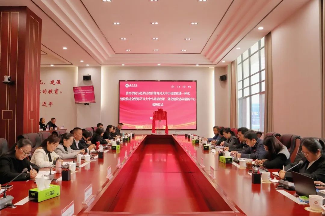 活动中,双方代表共同为“思茅区大中小幼一体化建设协同创新中心”揭牌,普洱学院各二级学院分别与思茅区各大中小学幼儿园结成合作“对子”,并就如何把思政课“讲深、讲透、讲活”、如何建设大中小幼思政课一体化平台等问题从多角度进行了研讨,进一步凝聚共识、明确方向,推动大中小幼思政课程有序衔接、整体推进思政课程创新。