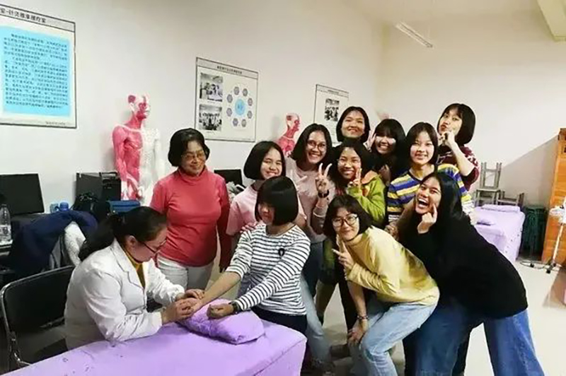 作为针灸推拿的专业课程之一中医传统康复课程是学院对外交流的亮点课程,受到广泛的欢迎。先后为泰国(泰国清莱皇家大学、泰国吞武里大学等)、印度、孟加拉等国家留学生进行中医传统康复疗法培训,培养留学生109人。随着对外交流的进一步深入,不仅推广了专业特色课程,同时为学生拓展视野,为学生在语言、文化、技术等多维度的国际交流创造了较好的环境。