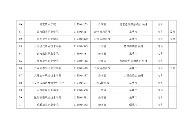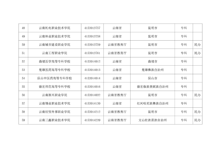 截至2024年6月10日,云南省高等学校共计92所,其中:普通高等学校91所,含本科院校33所、高职(专科)院校58所;成人高等学校1所。
