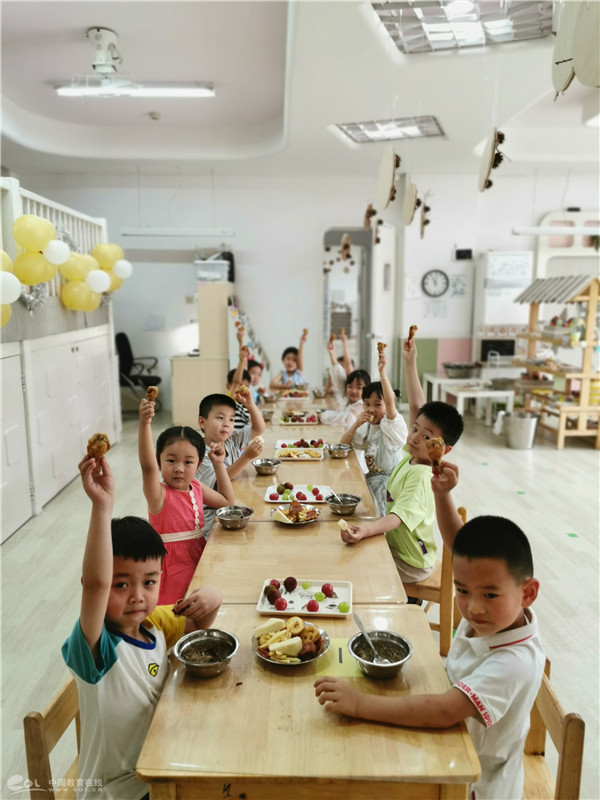 同样让孩子们开心不已的就是美味的食物了,今天幼儿园给孩子们准备了一场分班级的冷餐会活动,有小鸡腿、水果、薯条、笑脸饼、牛肉粉丝、小蛋糕等,看到孩子们的笑容,老师就知道他们是吃在了嘴里,乐在了心里。
