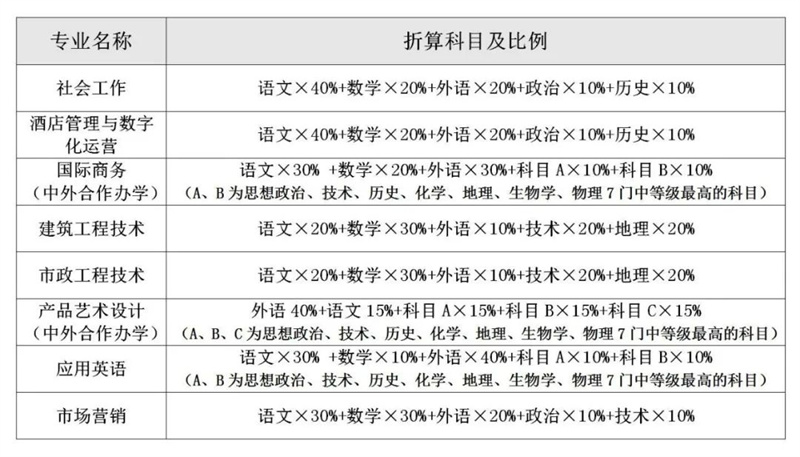 各招生专业的学考科目折算规则如下: