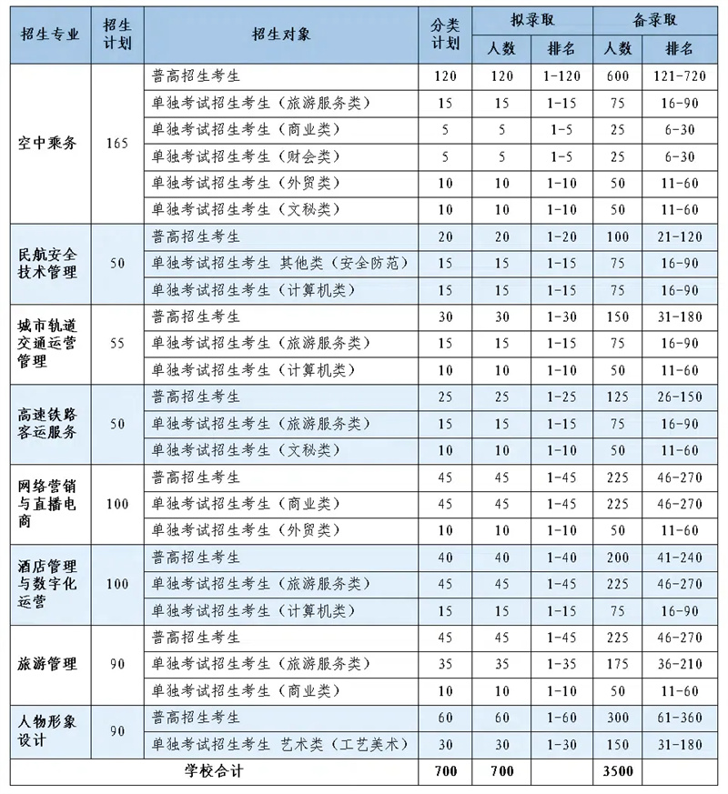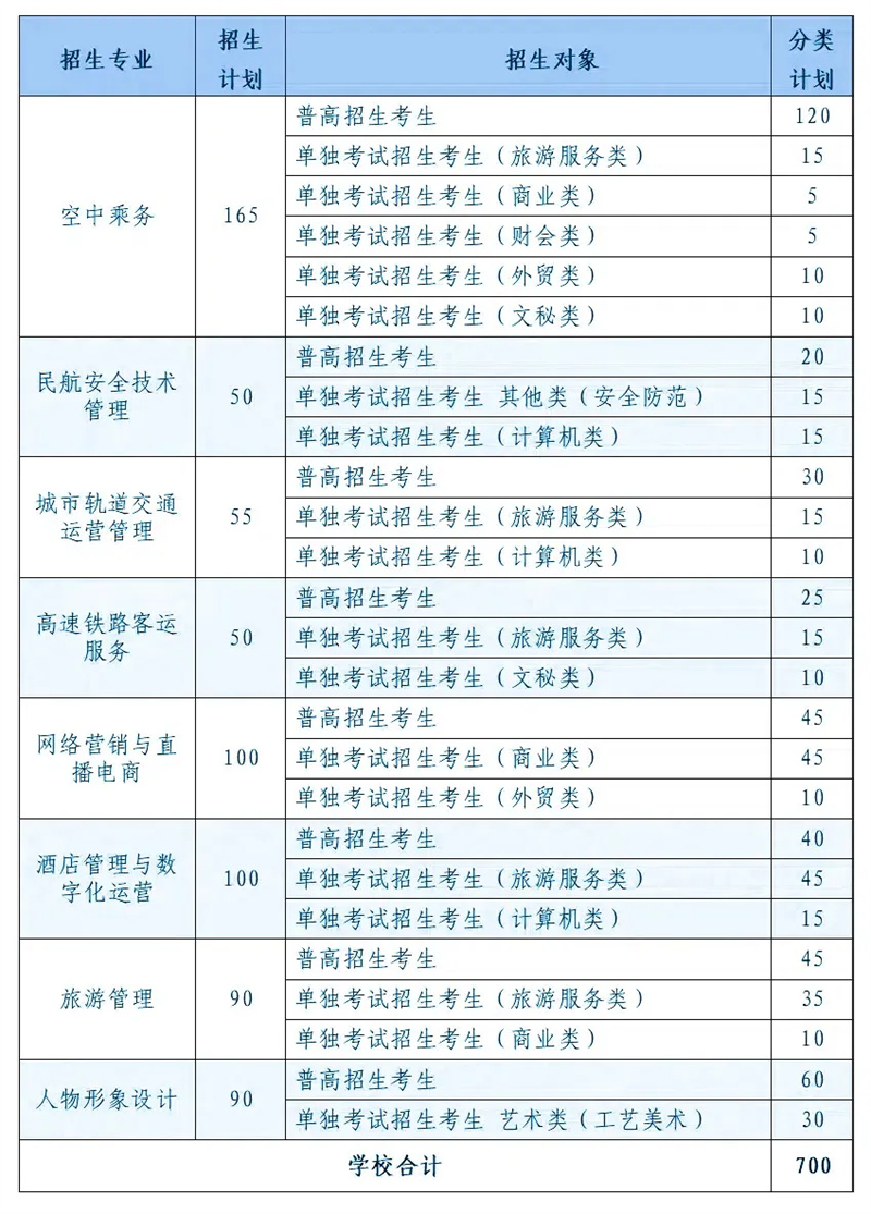 学校2025年面向浙江省高职提前招生计划为700人,学制三年,招收普高招生考生和单独考试招生考生,各类别具体招生计划如下: