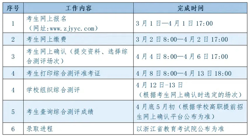 2025年3月1日—4月1日17:00,考生登录浙江育英职业技术学院网站(www.zjyyc.com),进入报名系统(省平台)进行网上报名。