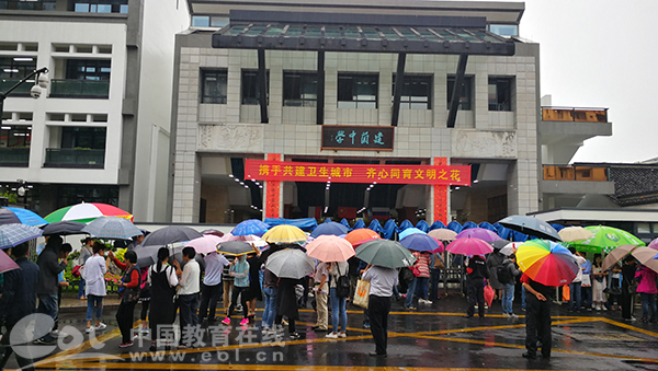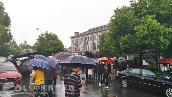 5月6日一大早,整个杭城都被滂沱大雨包围了。记者探访了多所热门民办初中,无一例外都在校门口看到了很多撑伞排队等候面谈的家长和学生。