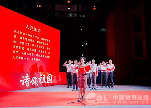 学校播音主持艺术学院、朗诵艺术团等以“初心永在、诗颂祖国”为主题,举办庆祝新中国成立七十周年暨“不忘初心、牢记使命”主题教育活动诗会,通过《日出东方》《改革富强》《走向辉煌》三个主要篇章,校领导集体诵读习近平金句,带领全体党员重温入党誓词,以及大合唱《我的祖国》等方式,回顾波澜壮阔的百年党史和70年执政史,讴歌一代代中国共产党人前赴后继、英勇奋斗,以为中国人民谋幸福、为中华民族谋复兴的初心和使命,创造了伟大成就,带领中国人民实现了从站起来、富起来到强起来的历史性飞跃。一个多小时的诗会,参加诗会朗诵的100多位师生以独诵、合诵、舞台剧、党员教师自述等多种形式,品味中国故事,延续中国传说,表达了全校师生坚定跟党走的永恒之心与坚守初心使命的忠诚之志,为“不忘初心、牢记使命”主题教育增加了诗意体验。