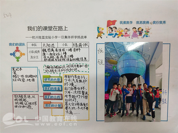 这次秋游可谓别出心裁,除了普通的吃喝玩乐之外,学校还将研学和垃圾分类融合在了其中。出行前,在老师们的帮助下,各班同学组建了研学集体,提前制定了前往低碳科技馆和万松书院的研学项目。