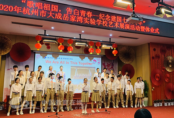 日前,杭州市大成岳家湾实验学校举行了歌唱祖国,告白青春——艺术展演活动暨休业式活动。全体师生欢聚一堂,用歌声表达对祖国的美好祝愿,用青春向祖国热情告白。