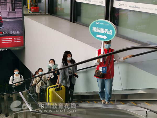 经过扫码查验、体温测量后,陈滢滢前往停车场乘坐学校的专用大巴。“把行李给我吧。”“请大家用免洗洗手液清洁双手,隔开就座。”……从出站到上车,一路都有身穿红马甲、戴口罩的教师志愿者热情指引和帮助。