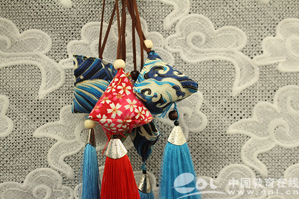 缝丝线、装香料、串珠子……不一会儿的功夫,五颜六色、样式各异的香囊就横空出世了。活动现场顿时弥漫起中草药的清香,格外沁人心脾,既增添了节日的气氛,又有驱虫辟邪的功效。