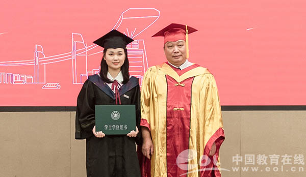 隆重的学位授予仪式上,赵敏为毕业生代表们颁发学位证书,并一一正冠、拨穗合影。稻穗的成熟代表着学有所成,从左到右,拔去的是大学的稚嫩与过往,拨来的是温大给每位学子的份份祝福与牵挂。