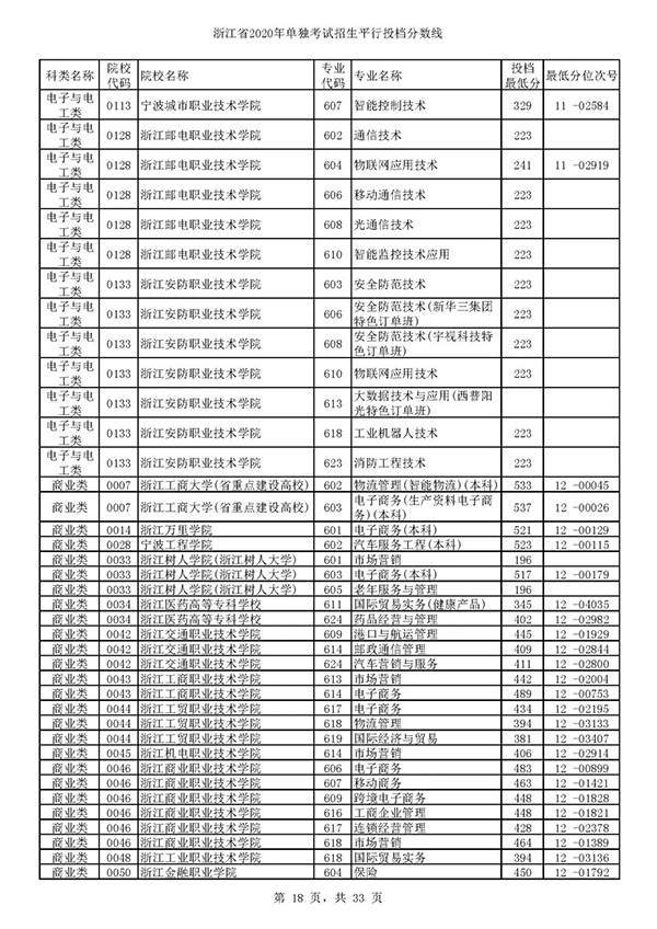浙江站讯(编辑 白菁洁)根据浙江省2020年高考招生录取进程,单独考试招生平行志愿于今天上午率先投档。各类别高校专业投档分数线和位次号已经公布,本次平行志愿投档录取结果预计将于8月6日晚发布,届时考生可通过浙江省教育考试院网站(www.zjzs.net)或“浙江考试”微信公众号,以及浙里办APP查询自己的录取状态。
