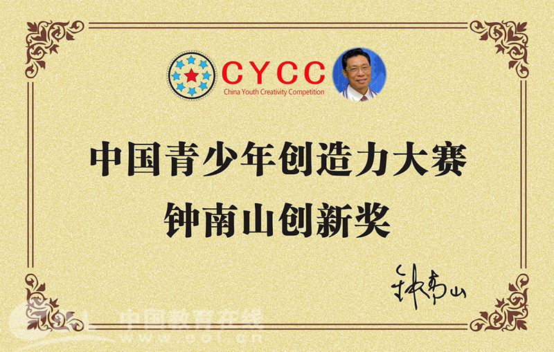 从此,开启了“钟南山创新奖”时代,成为钟南山创新精神进校园里程碑的第一起点,钟南山创新奖成为中国青少年创造力大赛的组成部分及重要标志,颁发的所有奖章由“钟南山创新奖”文字和钟南山院士肖像组成。