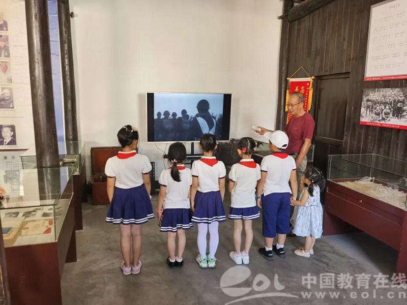 纪念馆里当日负责的爷爷组织参观学生们收看了抗日纪录片,向大家讲述了河上镇的抗日英雄事迹,重点介绍了70军80师238团周福康爷爷,还有一位陈立行爷爷在抗战中身中四刀日军刺刀砍后大难不死,坚强地活了下来,伤愈后继续参加抗战救国活动,作出了重要贡献的感人故事。学生们都深受感染,纷纷感慨英雄们真伟大!