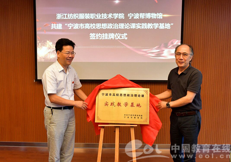 9月15日,浙江纺织服装职业技术学院在宁波帮博物馆举行“宁波市高校思想政治理论课实践教学基地”揭牌仪式,标志着该校构建思想政治理论课课堂教学与实践教学联动互促机制迈出了重要的一步。