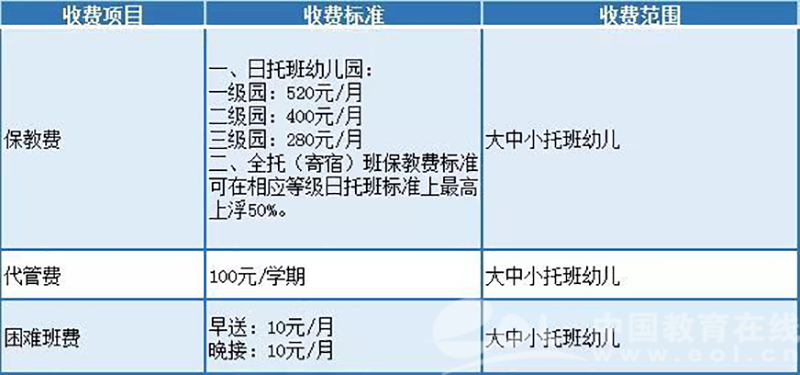 二、根据杭价费〔2014〕5号文件规定,幼儿园保教费按学期收取,不得跨学期预收,家长要求按月交费的,应按月收取。学期初和学期末不足一个月的,保教费按日计算。代管费按学期预收,单独核算,期末列出清单向幼儿家长公布,多退少不补;膳食费按实际发生费用收取,每月向幼儿家长公布账目。