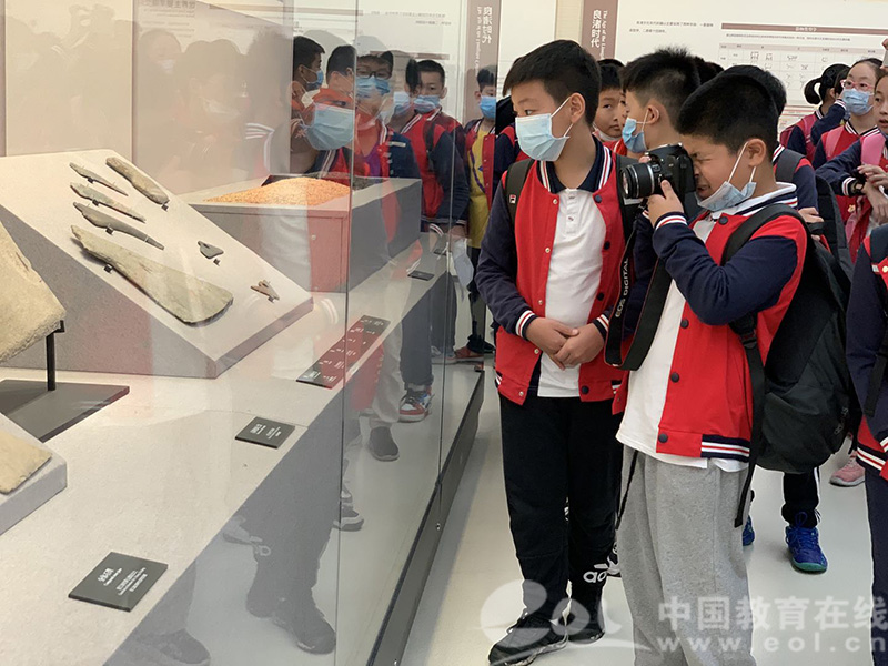 这次秋游,五年级的同学们来到了位于杭州市余杭区的“良渚博物院”,去了解了五千多年前的良渚文明。在展厅内,同学们在志愿讲解员阿姨们的带领下了解到了良渚文明的发源,感受到了良渚文明的智慧。